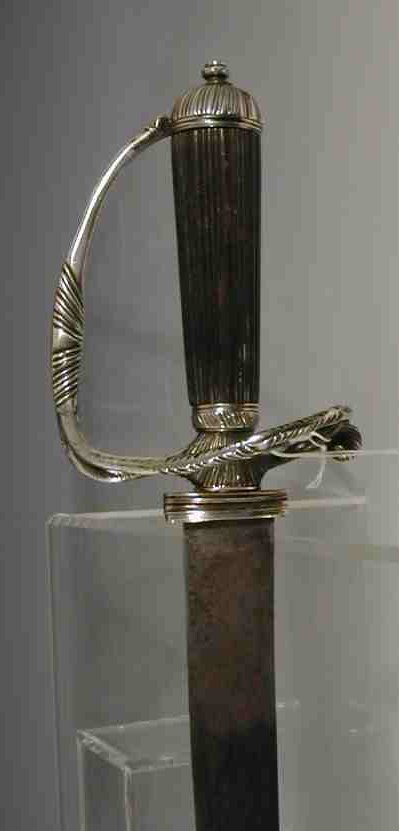 hallmark London 1753, maker John Carman, the grip of fluted hard wood, with fluted pommel, the single edge blade with clip point 5" from tip, scabbard missing