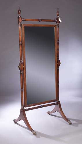 with turned and blocked supports and urn finials, on splayed feet with brass paw caps and castors