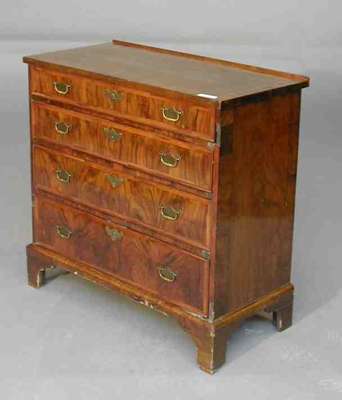 with feather banding, the rectangular top with crossbanding, above four long graduated drawers on bracket feet