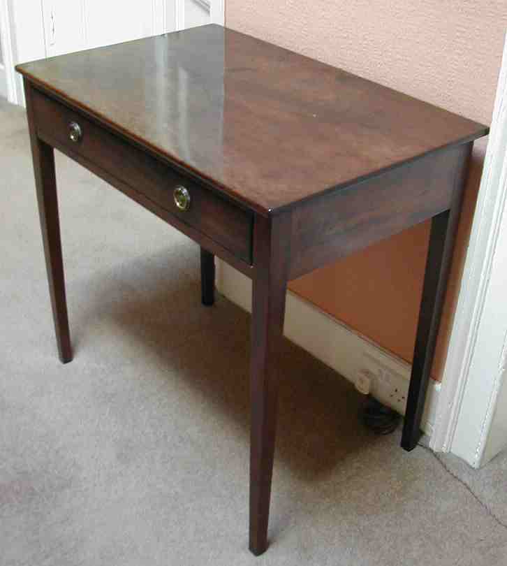 the rectangular top above single drawer on square section tapering legs