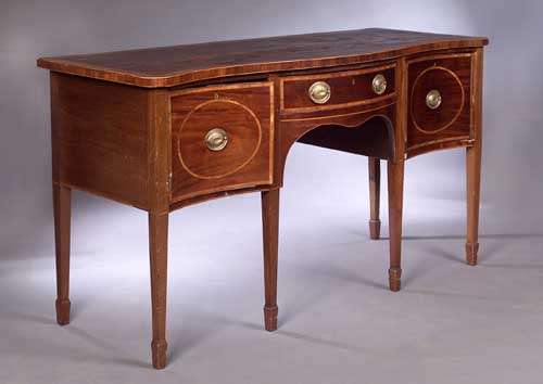 A George III style mahogany serpentine sideboard