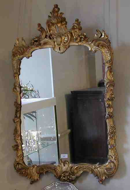 the shaped rectangular plate within moulded leaf and flower carved frame with cabochon surmount
