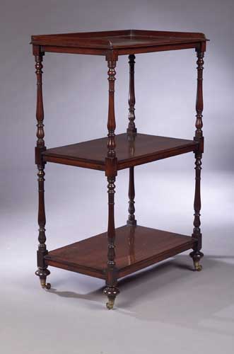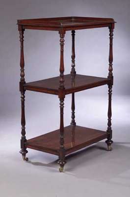 An early 19th century mahogany three tier whatnot