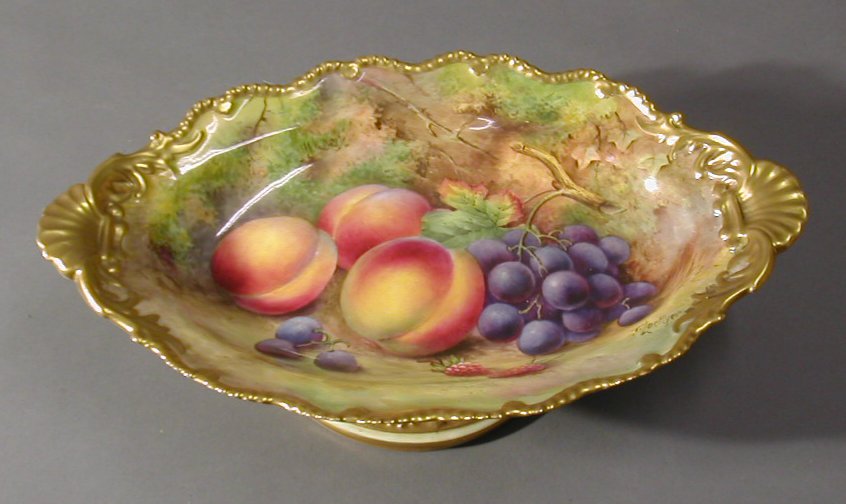 A Royal Worcester oval twin handled scalloped and footed bowl