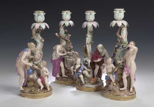 A set of four 19th century Meissen table figural candlesticks