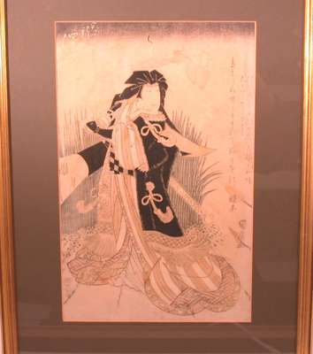 Figure of a warrior brandishing a sword, 35.5 x 23 cm; also a print of a warrior by Kunihiro, 1820s