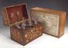 of rectangular form, the hinged glazed lid framing watercolour design for a painted ceiling, painted ribbon tied swags to the front with an Earl's coronet above the keyhole, quilted silk lined interior