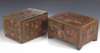 with fall front enclosing four drawers, painted with flowers, 29cm wide; and other with hinged lifting lid enclosing divided interior, painted with scenes of court life, 31cm wide (2)