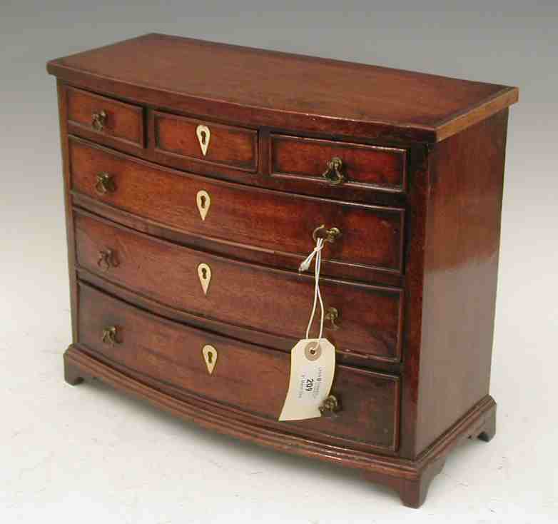 A 19th century mahogany miniature bow front chest,