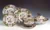 printed and painted in the Chinoiserie manner with central panel of peacock amdist peony and prunus blossoms, the deep border decorated with vases of flowers interspresed by cartouche panels of flowers, birds and insects, brown printed mark, c. 1850 and painted pattern number "2802", the underside with simple flower sprigs. comprising:a pair of twin-handled vegetable terrines and coversa pair twin-handled sauce terrines, covers and stands16 meat plates9 fish plates11 side plates10 pudding plates