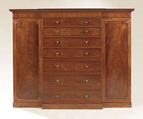 A 19th century mahogany gentleman's breakfront wardrobe,