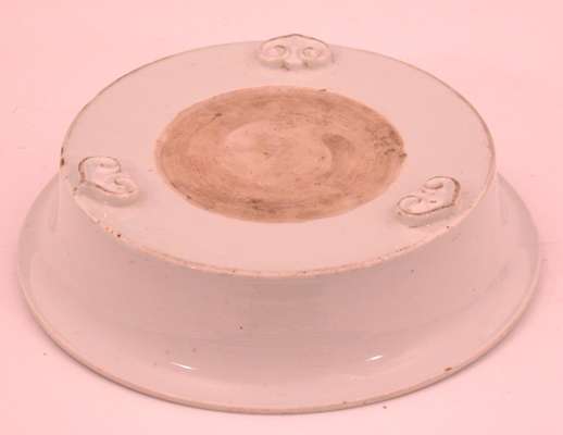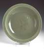 the narrow rim with incised loose scroll motif, the deep well with incised leafy lotus blossom within incised concentric lines, with deep foot rim, the underside with unglazed circle