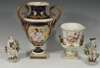 (converted to lamp), a twin handled Derby vase and a pair of Derby figures with sheep (4)