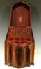 with rosewood crossbanding and chequer stringing, the sloping hinged lid with shell patera inlay, enclosing a fitted interior for cutlery above arc-en-arbelette front