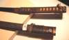 A Japanese sword (Katana) with long point blade raised top ridge,