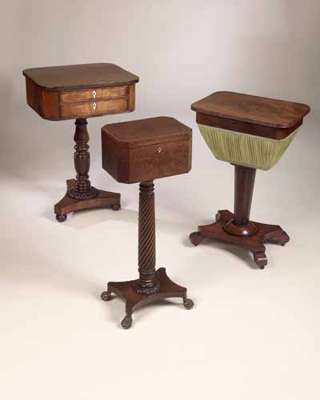 the rectangular top with rounded angles above two drawers and opposing dummies, raised on blauster turned pedestal with gadrooned base and concave triform plinth with bun feet