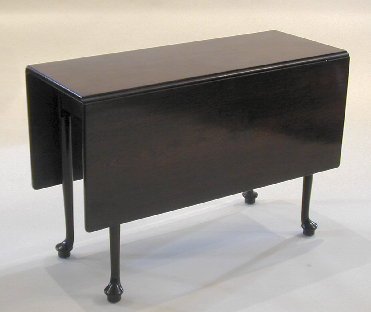 the rectangular top with slightly rounded angles above tapering legs terminating in pad feet