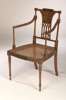 An Edwardian Sheraton revival painted satinwood bergere armchair,