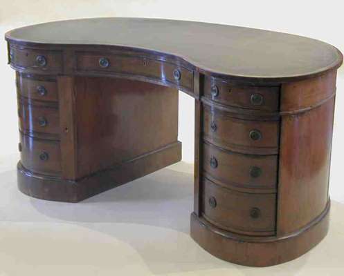 A late 19th century mahogany kidney-shaped desk,