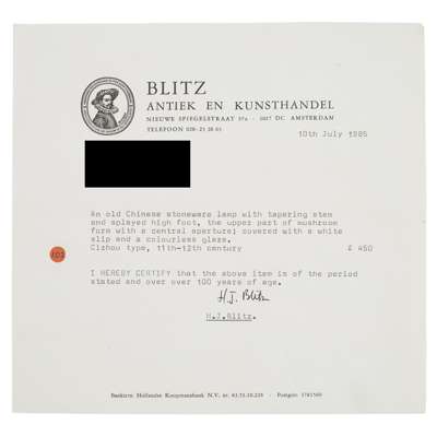 From a private Scottish collection of early Chinese ceramics; purchased from Blitz Antiek En Kunsthandel, Amsterdam with original invoice dated 10.07.1985.
