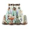 the brothers holding a box and a rice sheaf as they sit together on a low base, the surfaces highlighted with green, blue, red and brown glazes