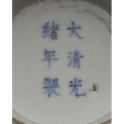 the compressed globular body raised on a spreading foot, rising to a tall slender neck, covered in a raspberry coloured glaze suffused with fine crackles, the base inscribed with a six-character underglaze Guangxu mark