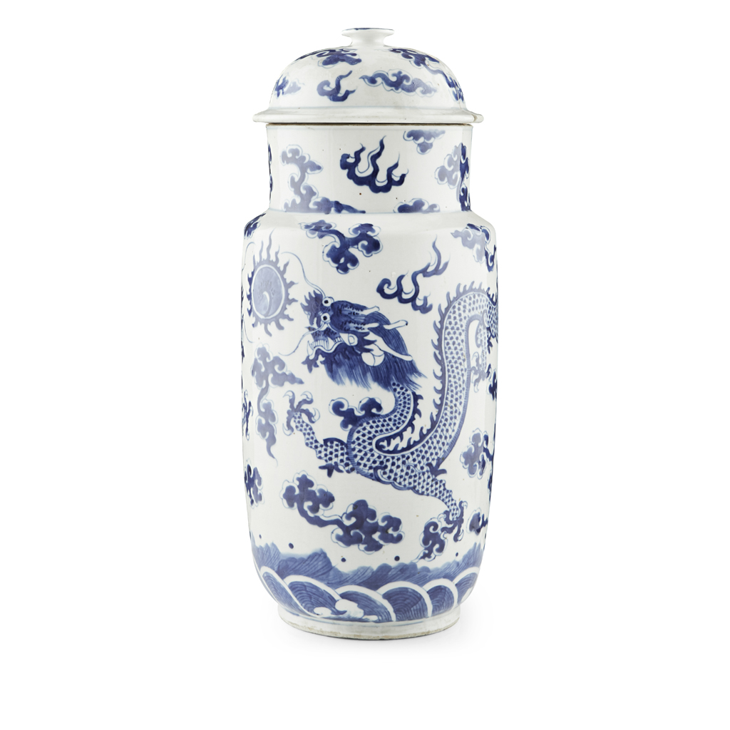 BLUE AND WHITE 'DRAGON' VASE AND COVER