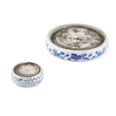 TWO BLUE AND WHITE PORCELAIN INKSTONES