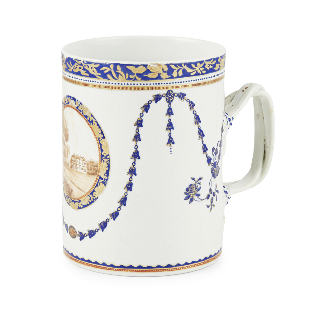 BLUE ENAMEL AND GILT 'EUROPEAN SUBJECT' PORCELAIN TANKARD