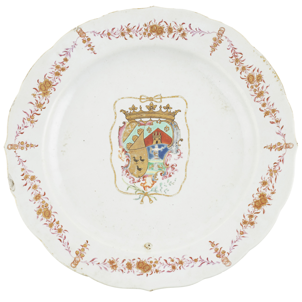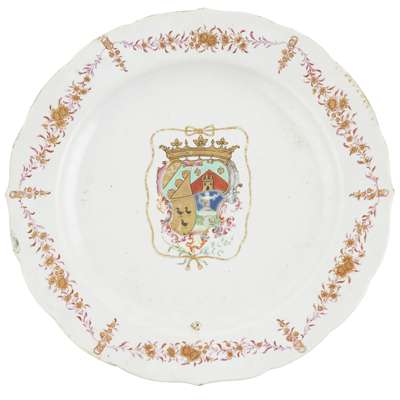 FAMILLE ROSE AND GILT-DECORATED ARMORIAL PLATE