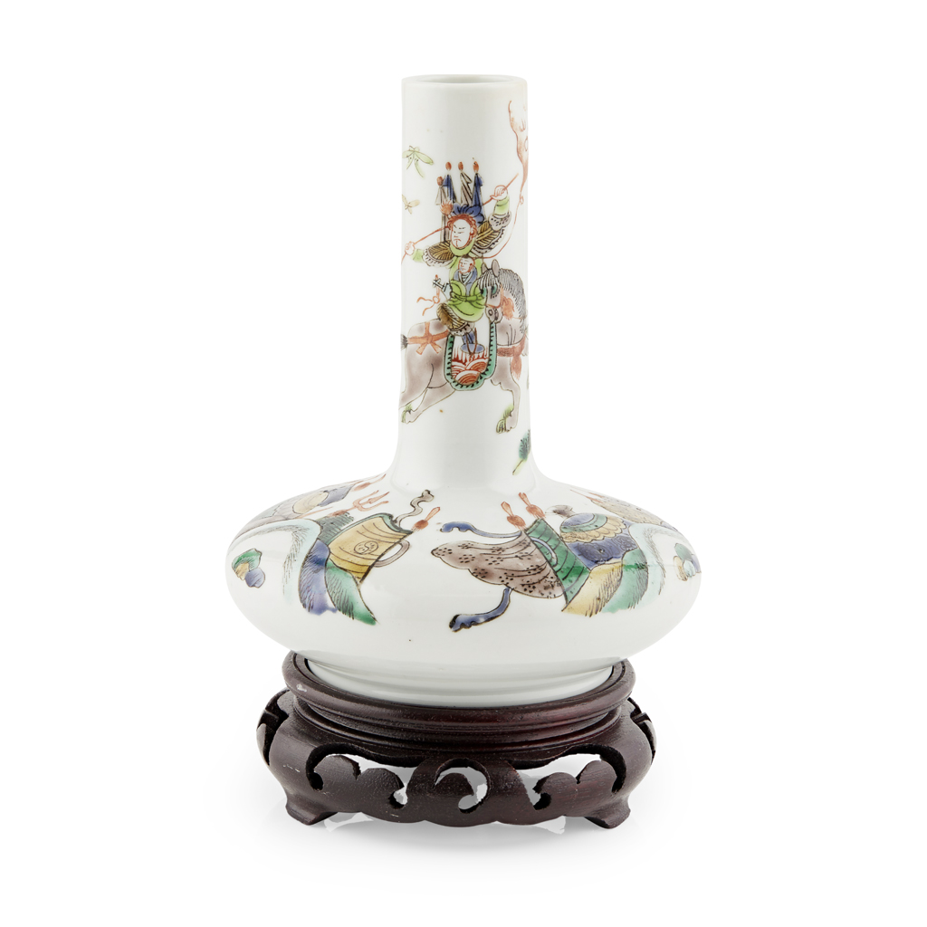 FAMILLE VERTE 'ROMANCE OF THE THREE KINGDOMS' BOTTLE VASE