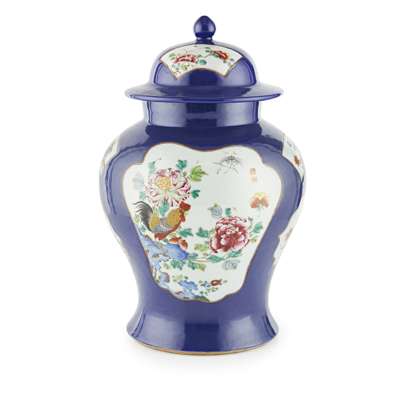 FAMILLE VERTE BLUE-GROUND BALUSTER JAR AND COVER