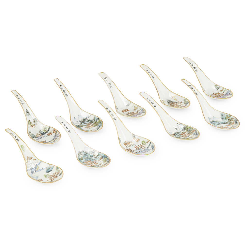 TEN FAMILLE ROSE SPOONS WITH FAMOUS VIEWS OF JIANGXI