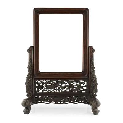 FAMILLE ROSE PORCELAIN AND HARDWOOD TABLE SCREEN