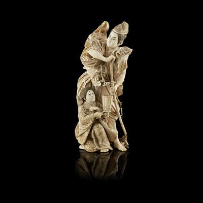 FINELY CARVED IVORY OKIMONO OF A SAMURAI Y
