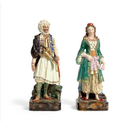 PAIR OF 'PORCELAINE DE PARIS' OTTOMAN FIGURES OF A SULTAN AND SULTANA