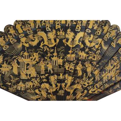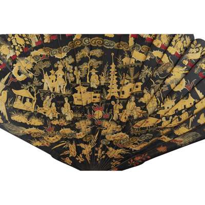 TWO GILT AND BLACK LACQUER BRISÉ FANS