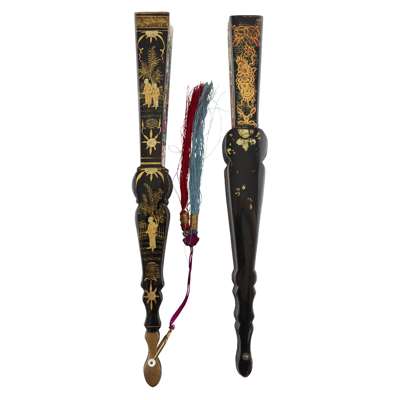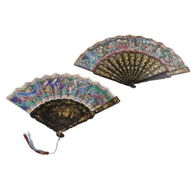 TWO PAINTED AND LACQUERED 'THOUSAND FACES' FANS Y