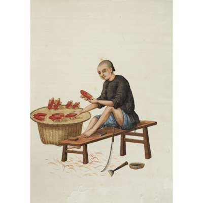 ALBUM OF SIX PAINTINGS ON PITH PAPER