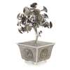 naturalistically modelled depicting a blossoming chrysanthemum tree issuing from a square-section jardinière intricately worked in silver filigree with four raised floral panels reserved on dense scrolling foliage
