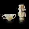 明 玉雕仿古青銅器式瓶及耳杯(兩件)