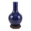 the globular body rising to a long cylindrical neck, covered overall with deep blue glaze, with a hardwood stand