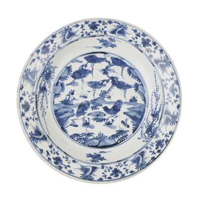 明 漳州窯青花麒麟紋及雞禽紋盤(兩件)