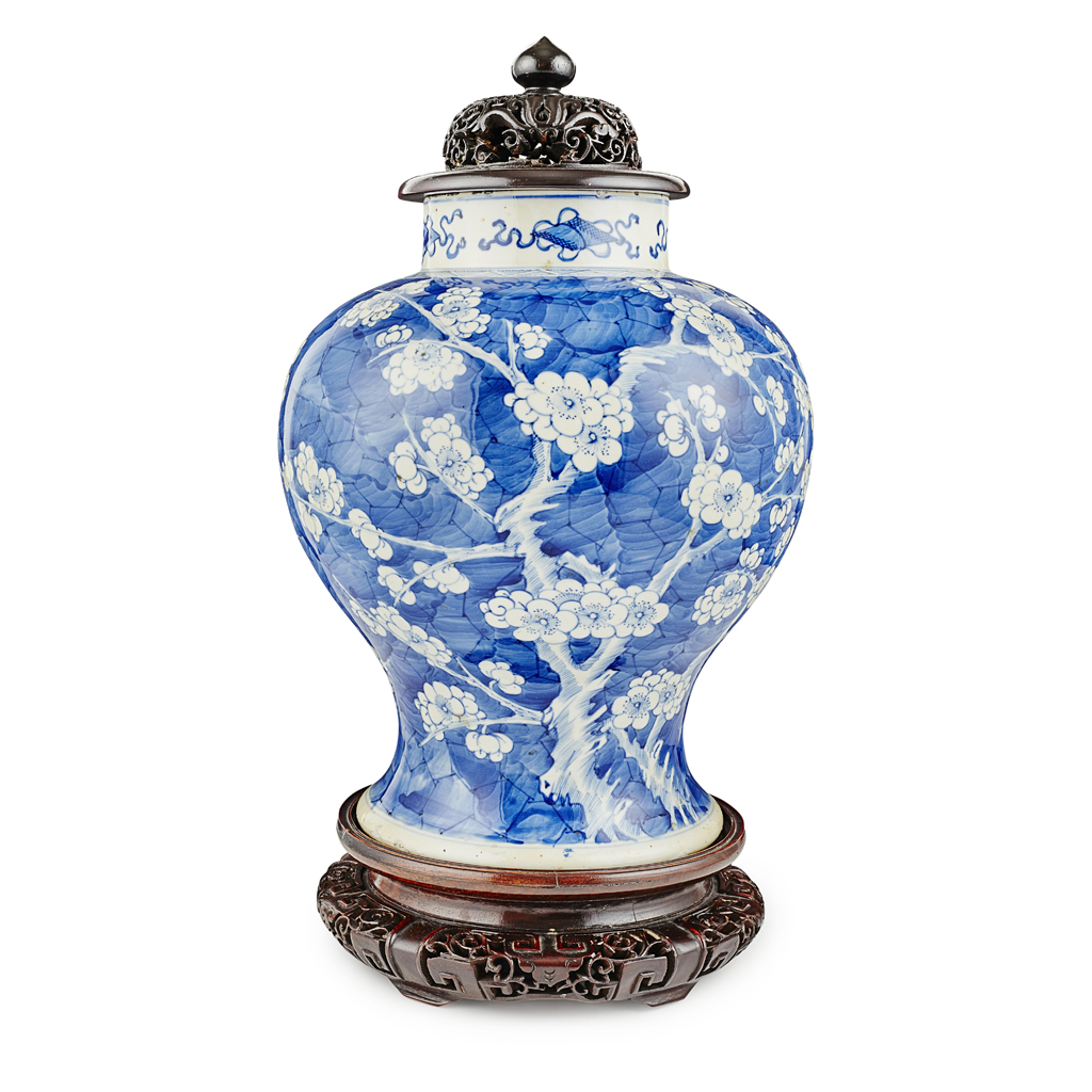 BLUE AND WHITE 'CRACKED ICE AND PRUNUS' BALUSTER JAR