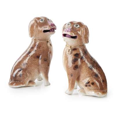 Note: a closely comparable pair of spaniel pups with the same size and painted in iron-red was in the Peggy and David Rockefeller collection, sold at Christie's New York on 9th May 2018, lot 153