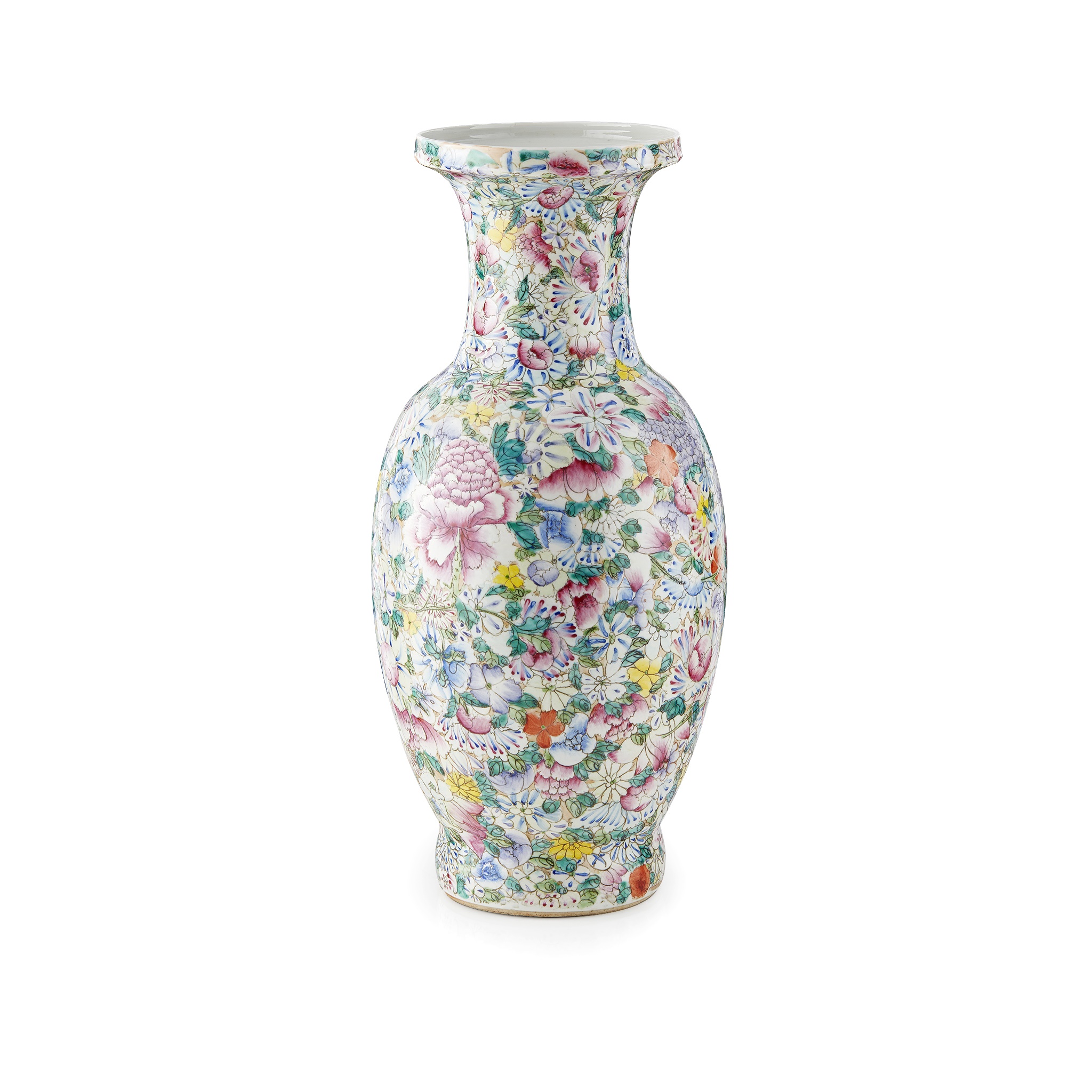TWO FAMILLE ROSE MILLEFLEUR BALUSTER VASE AND CHARGER