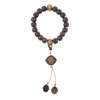 comprising twenty beads, two inlaid with golden filigree in shou (longetivity) character, suspending tassel decorated with golden filigree sandalwood plaques