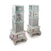 清 綠彩開光壽紋模印瑞獸山水紋方瓶含座(一對)