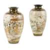 明治 守山款 薩摩燒開光描金花鳥仕女圖對瓶