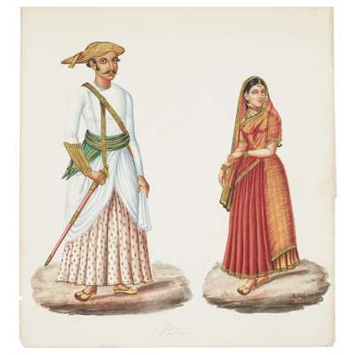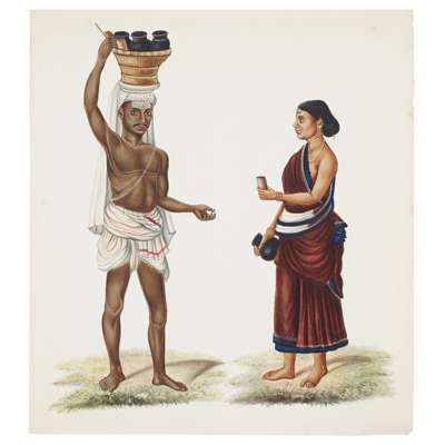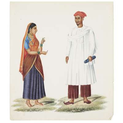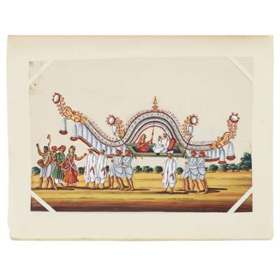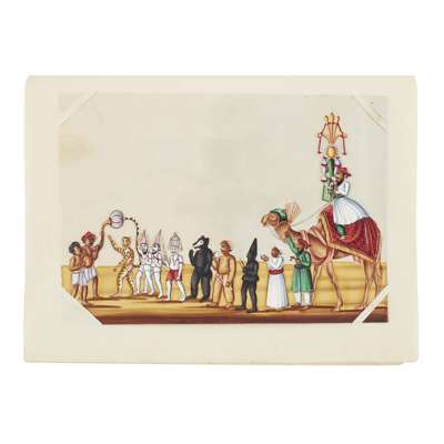 mixed media, comprising twelve on paper, depicting couples or pairs of figures, and three small albums fitted with thirty paintings on mica, depicting various processions, farming and deities
